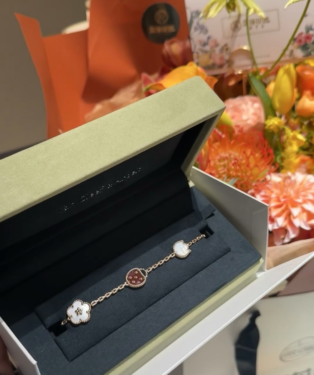 This jewelry is AAAAA 1:1 quality (superb). Materials used are identical to the original ones. Van Cleef & Arpels trademark marks are indistinguishable to the authentic. Photos take by actual jewelry, what you receive will be 100% same with our photos.