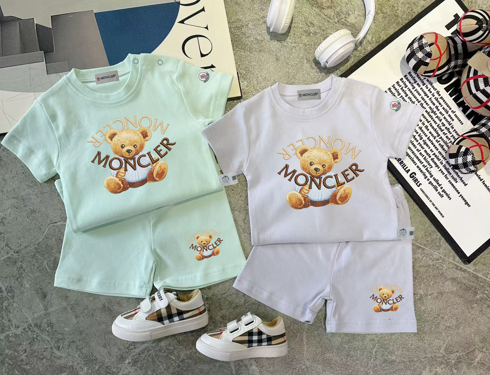 This children's clothes is AAAAA 1:1 quality (superb). Materials used are identical to the original ones. trademark marks are indistinguishable to the authentic. Photos take by actual children's clothes, what you receive will be 100% same with our photos.
