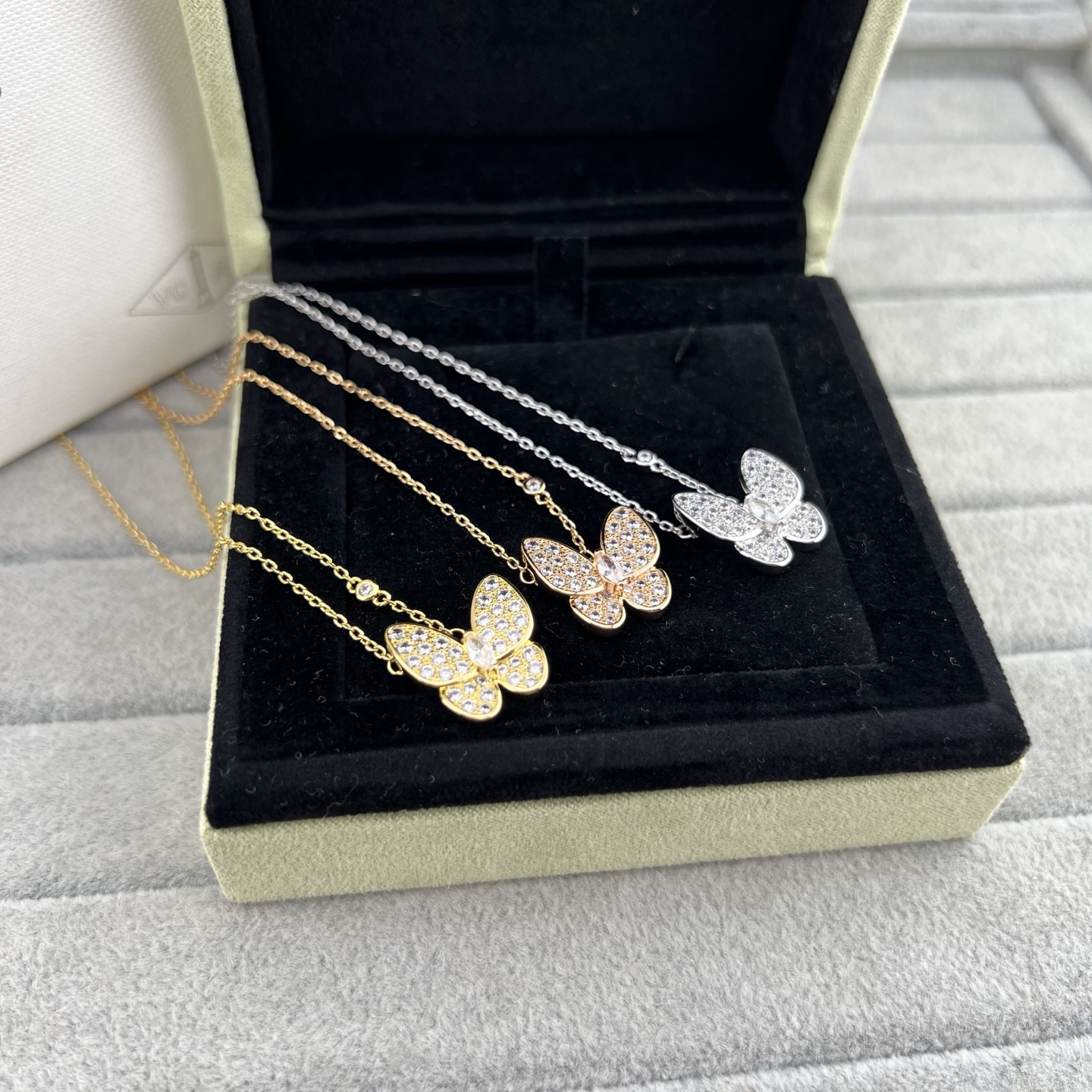 This jewelry is AAAAA 1:1 quality (superb). Materials used are identical to the original ones. Van Cleef & Arpels trademark marks are indistinguishable to the authentic. Photos take by actual jewelry, what you receive will be 100% same with our photos.