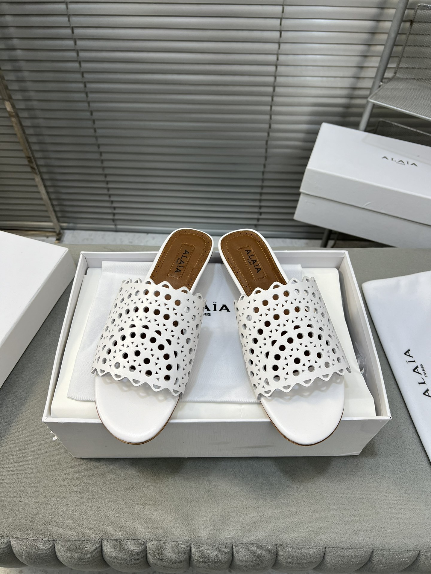 This shoes is AAAAA 1:1 quality (superb). Materials used are identical to the original ones. Alaia trademark marks are indistinguishable to the authentic. Photos take by actual shoes, what you receive will be 100% same with our photos.