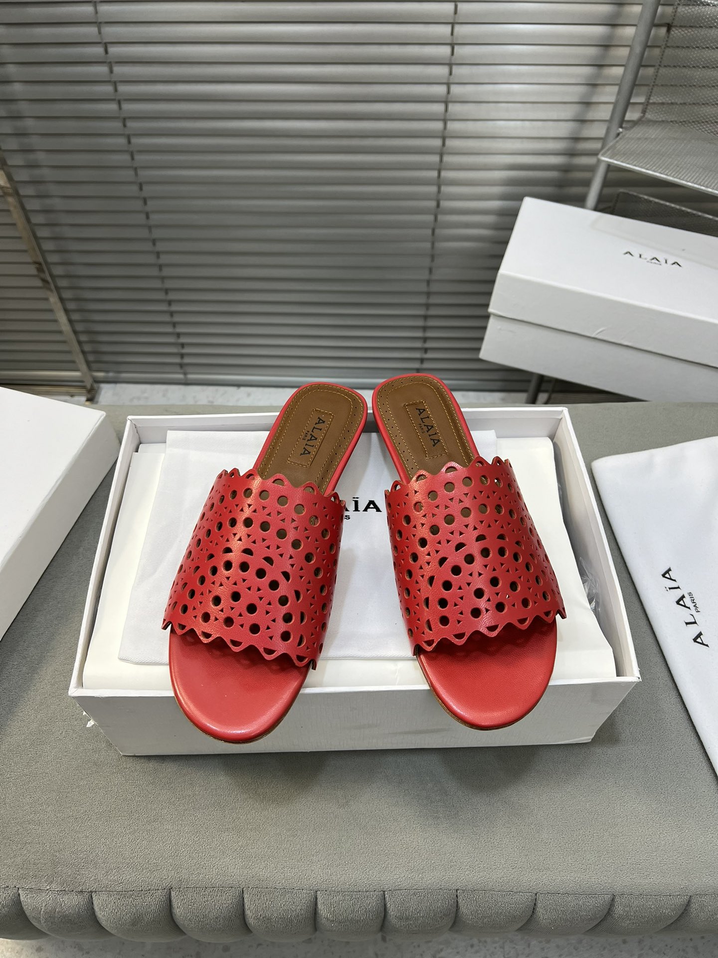 This shoes is AAAAA 1:1 quality (superb). Materials used are identical to the original ones. Alaia trademark marks are indistinguishable to the authentic. Photos take by actual shoes, what you receive will be 100% same with our photos.