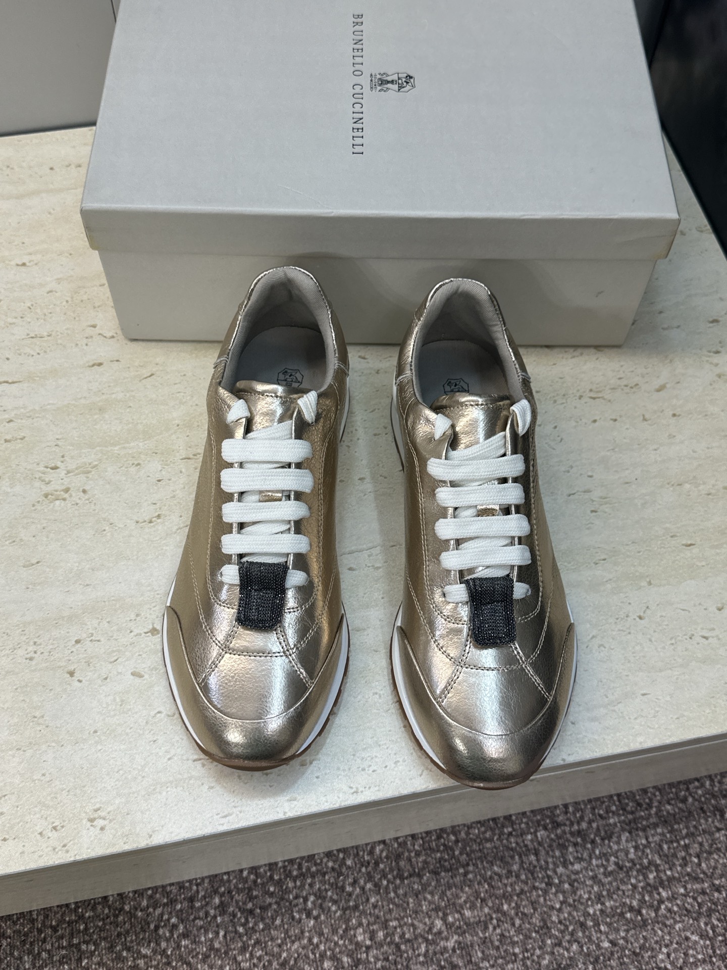 This shoes is AAAAA 1:1 quality (superb). Materials used are identical to the original ones. Brunello Cucinelli trademark marks are indistinguishable to the authentic. Photos take by actual shoes, what you receive will be 100% same with our photos.