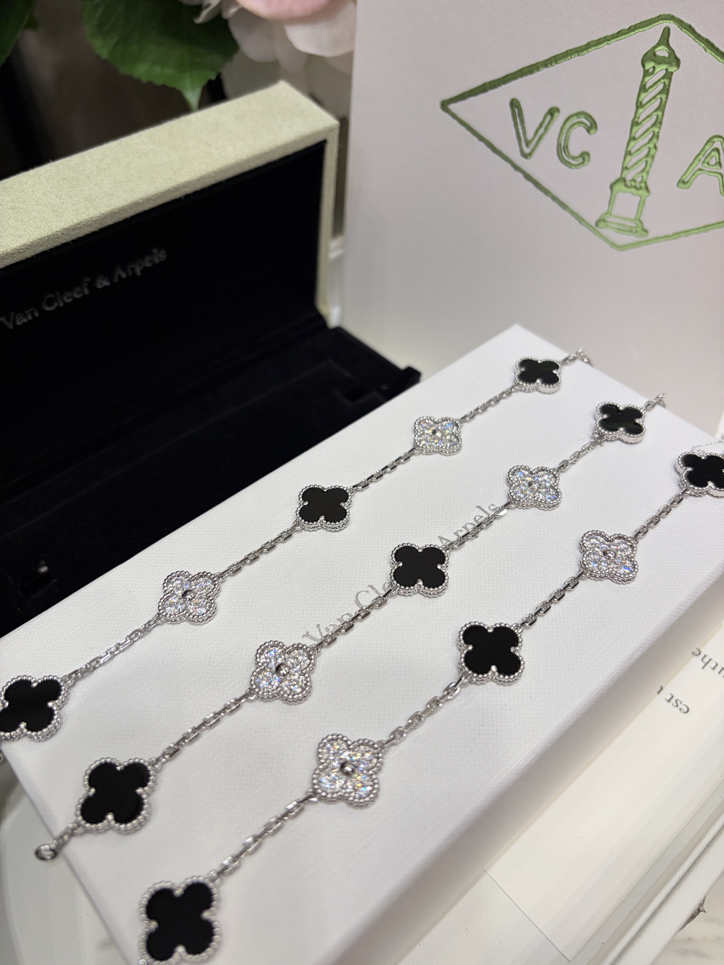 This jewelry is AAAAA 1:1 quality (superb). Materials used are identical to the original ones. Van Cleef & Arpels trademark marks are indistinguishable to the authentic. Photos take by actual jewelry, what you receive will be 100% same with our photos.