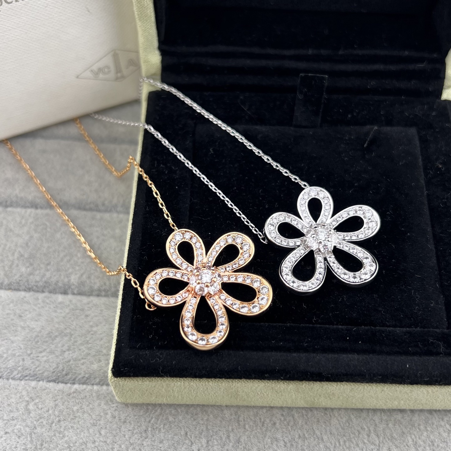 This jewelry is AAAAA 1:1 quality (superb). Materials used are identical to the original ones. Van Cleef & Arpels trademark marks are indistinguishable to the authentic. Photos take by actual jewelry, what you receive will be 100% same with our photos.