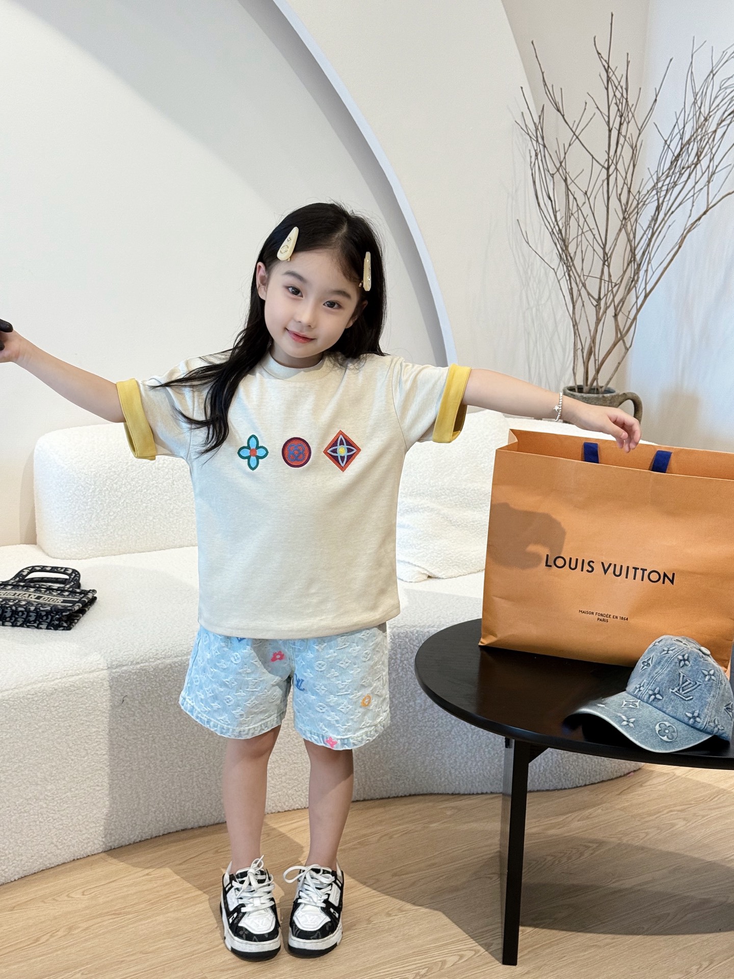 This children's clothes is AAAAA 1:1 quality (superb). Materials used are identical to the original ones. trademark marks are indistinguishable to the authentic. Photos take by actual children's clothes, what you receive will be 100% same with our photos.