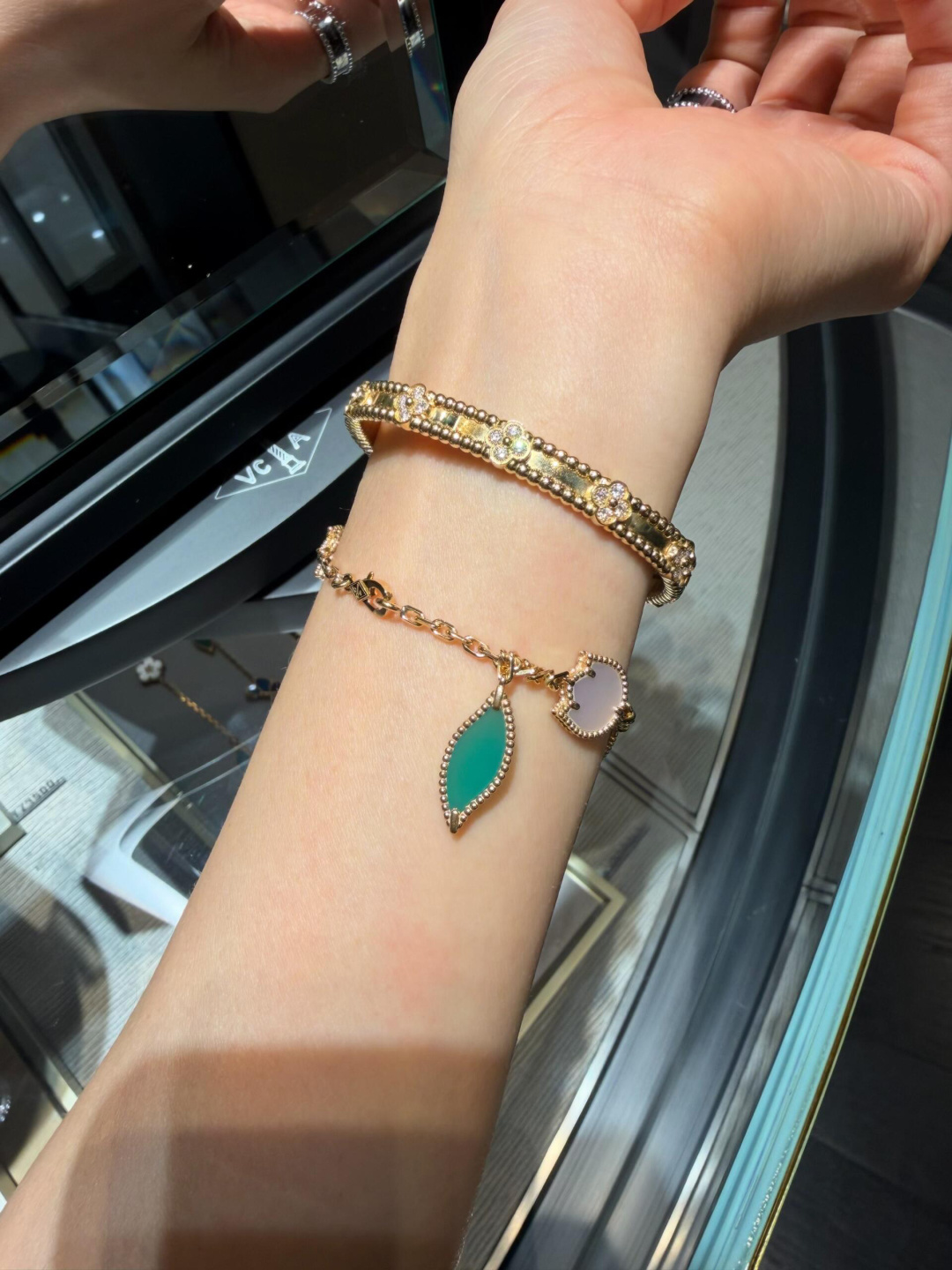 This jewelry is AAAAA 1:1 quality (superb). Materials used are identical to the original ones. Van Cleef & Arpels trademark marks are indistinguishable to the authentic. Photos take by actual jewelry, what you receive will be 100% same with our photos.