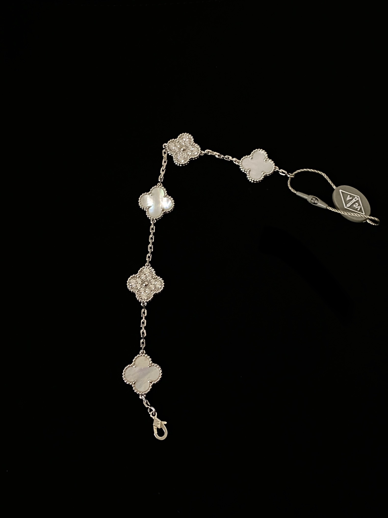 This jewelry is AAAAA 1:1 quality (superb). Materials used are identical to the original ones. Van Cleef & Arpels trademark marks are indistinguishable to the authentic. Photos take by actual jewelry, what you receive will be 100% same with our photos.