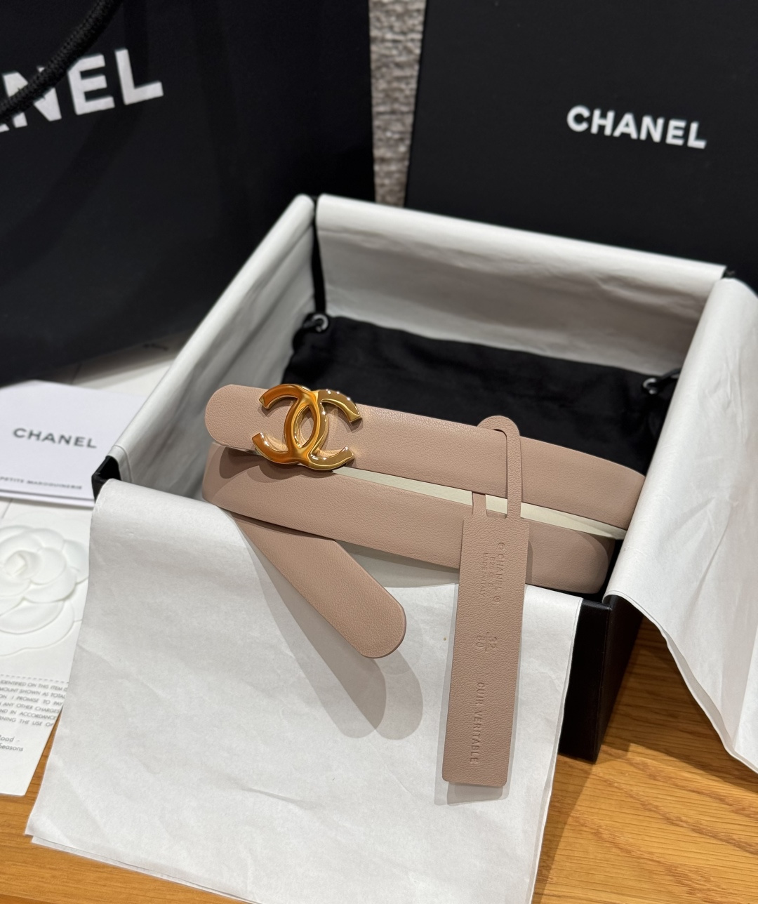 This belt is AAAAA 1:1 quality (superb). Materials used are identical to the original ones. Chanel trademark marks are indistinguishable to the authentic. Photos take by actual belt, what you receive will be 100% same with our photos.