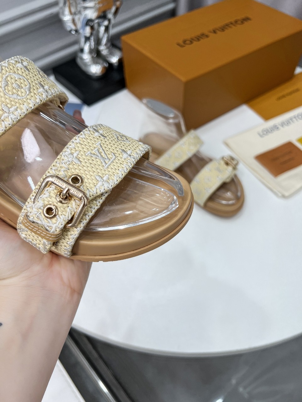 This shoes is AAAAA 1:1 quality (superb). Materials used are identical to the original ones. Louis Vuitton trademark marks are indistinguishable to the authentic. Photos take by actual shoes, what you receive will be 100% same with our photos.