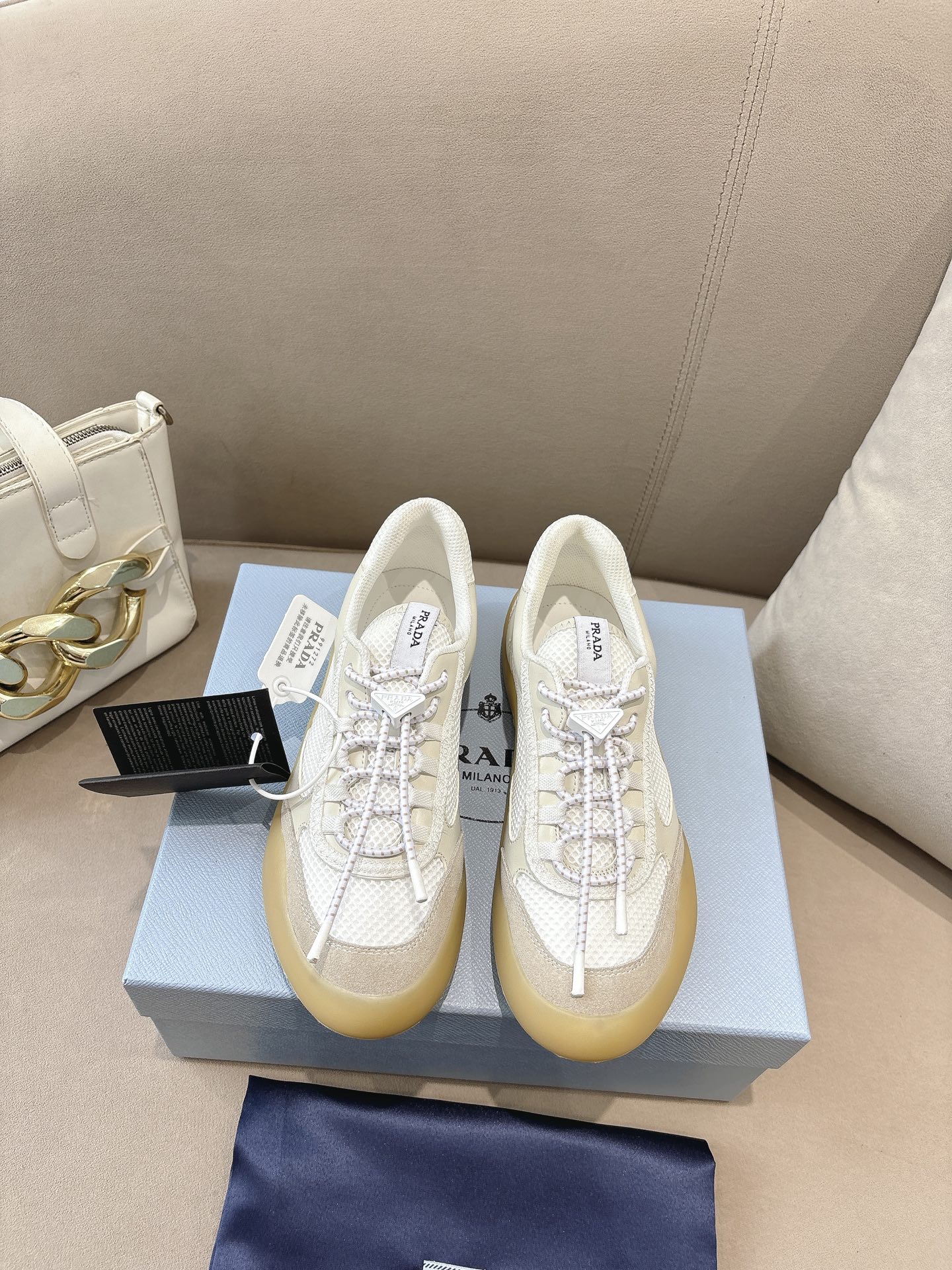 This shoes is AAAAA 1:1 quality (superb). Materials used are identical to the original ones. Prada trademark marks are indistinguishable to the authentic. Photos take by actual shoes, what you receive will be 100% same with our photos.