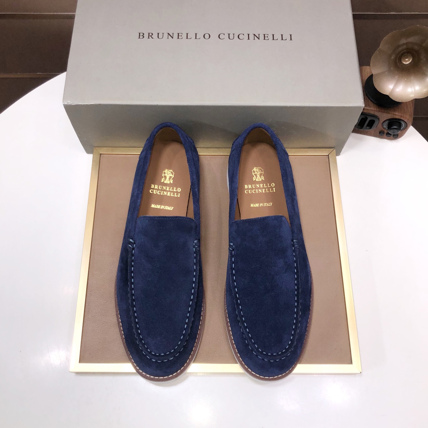 This shoes is AAAAA 1:1 quality (superb). Materials used are identical to the original ones. Brunello Cucinelli trademark marks are indistinguishable to the authentic. Photos take by actual shoes, what you receive will be 100% same with our photos.