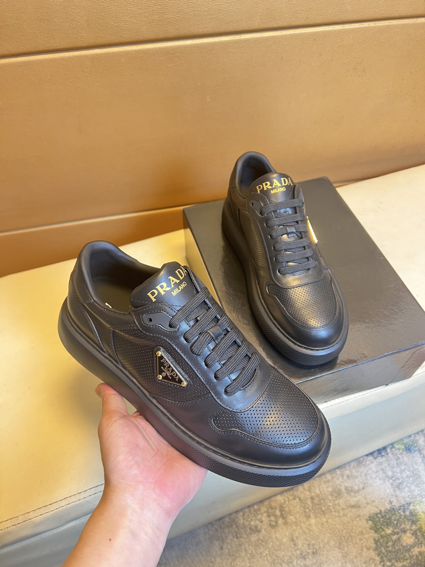 This shoes is AAAAA 1:1 quality (superb). Materials used are identical to the original ones. Prada trademark marks are indistinguishable to the authentic. Photos take by actual shoes, what you receive will be 100% same with our photos.