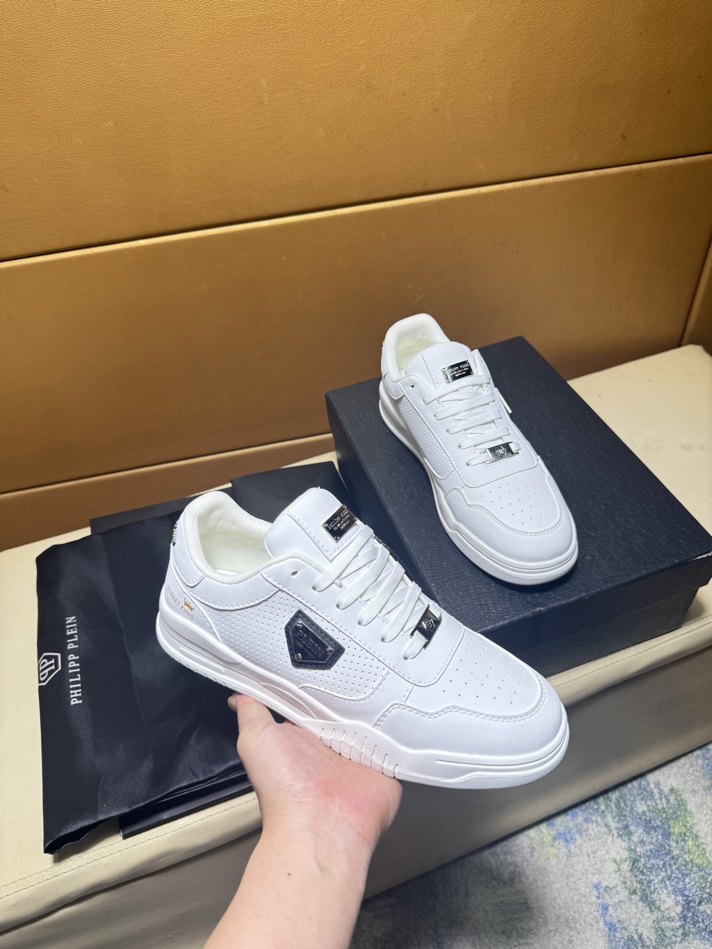 This shoes is AAAAA 1:1 quality (superb). Materials used are identical to the original ones. Philipp Plein trademark marks are indistinguishable to the authentic. Photos take by actual shoes, what you receive will be 100% same with our photos.