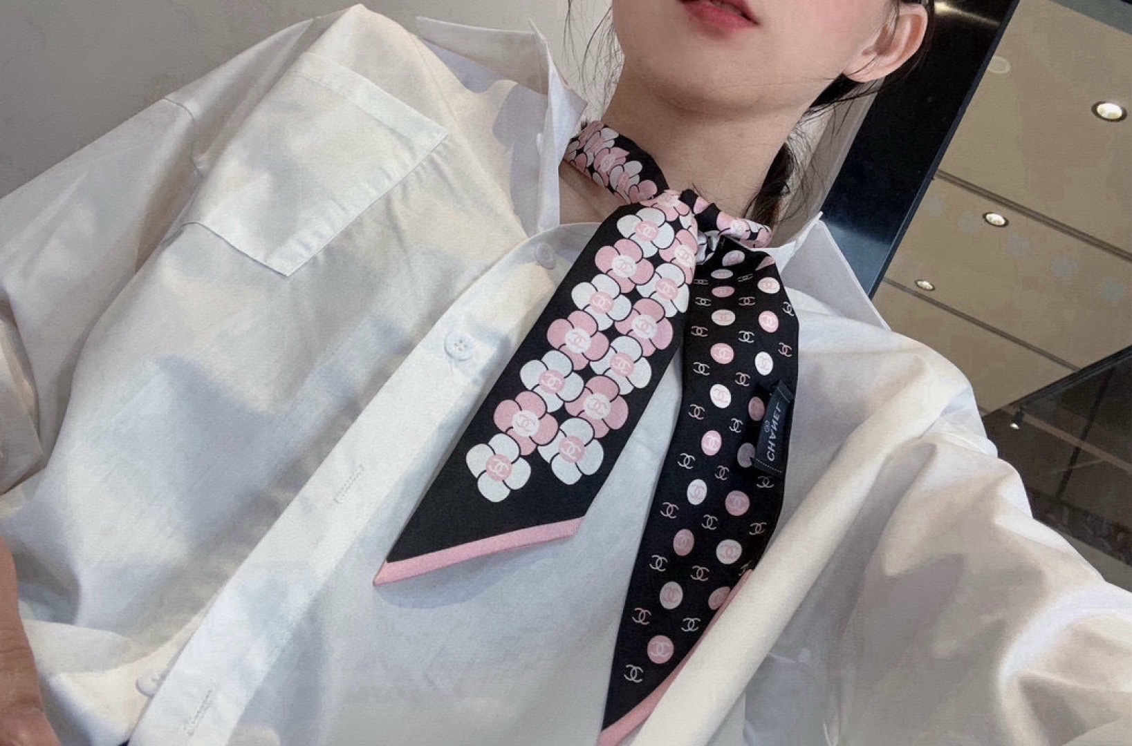 NO:4942983. The scarf is from Chanel designer.