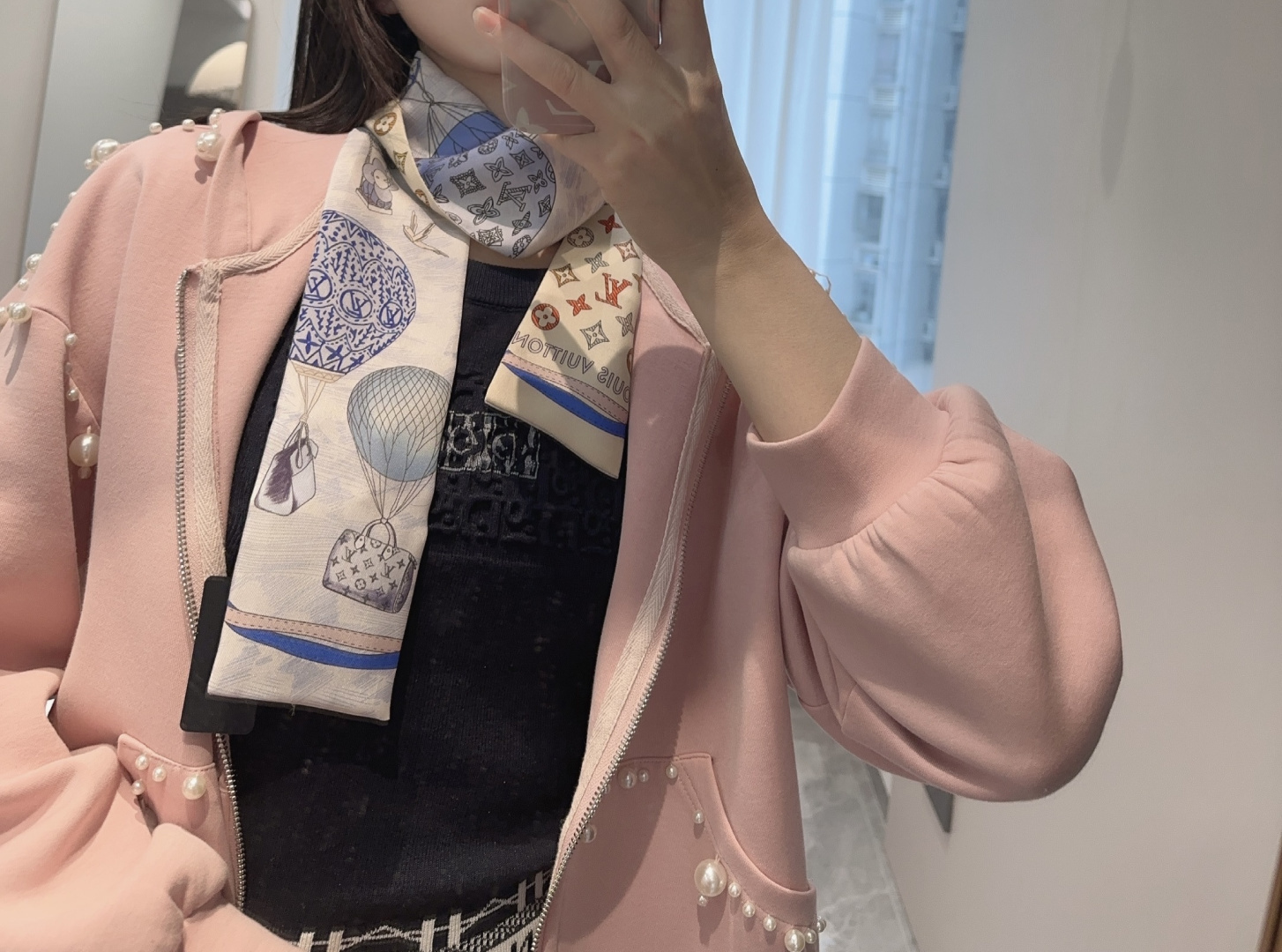 NO:4942998. The scarf is from Louis Vuitton designer.