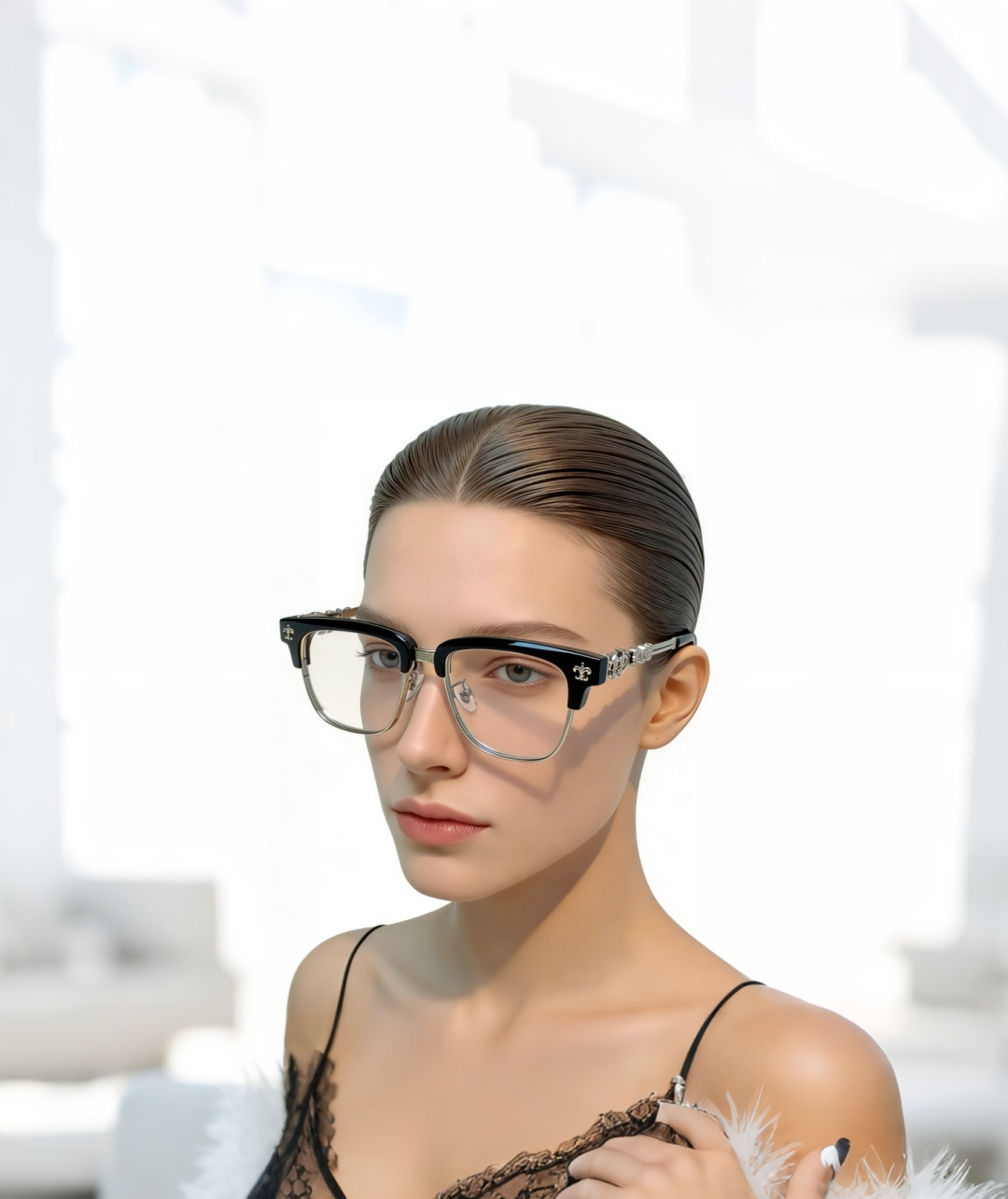 NO:4943472. The scarf is from Chrome Hearts designer.